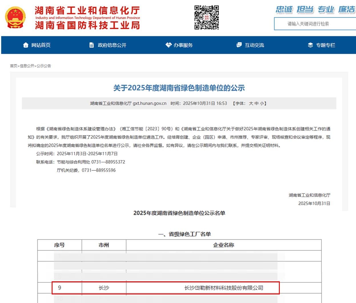 岱勒新材顺利通过省级绿色工厂认定,成功入选湖南省工业和信息化厅公示的2025年度湖南省绿色制造单位名单。这一荣誉是对公司···...